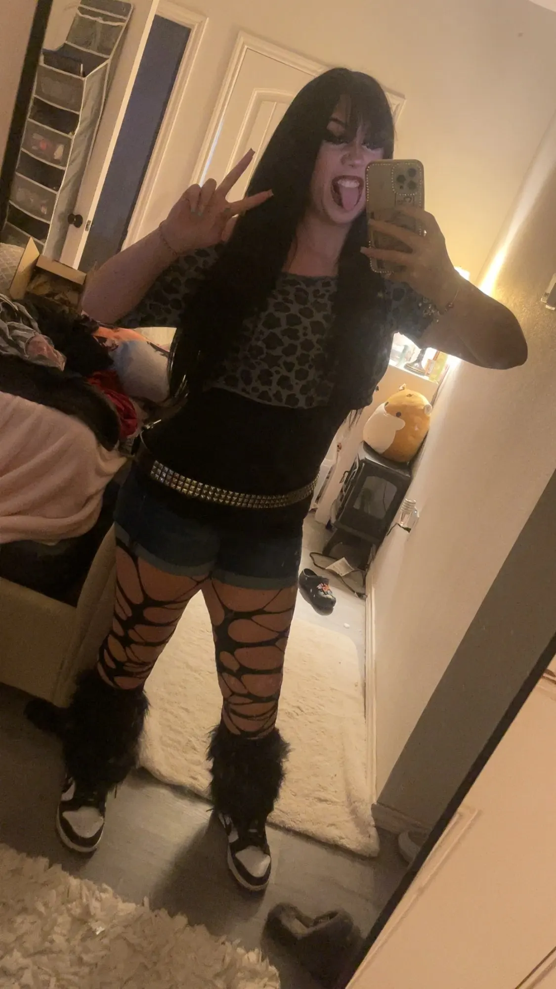 Y2K-inspired black furry boot covers in faux fur. Available in short or tall styles, eco-friendly, cozy, and the ultimate millennium streetwear essential.